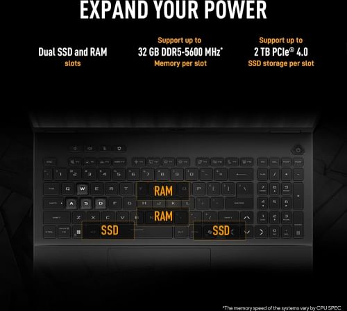 Asus TUF Gaming F16 FX688JPR-QT043WS Laptop comes with 1 TB SSD. There is 32 GB DDR5 RAM in this model which can be upgraded to 64 GB.